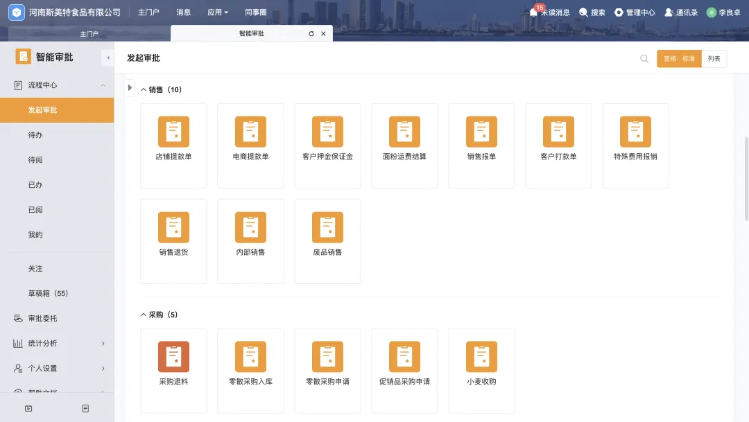 平台构建了覆盖人事、行政、销售、采购、库存、生产、财务、主数据等8大业务类型的80多个标准化流程模板,融合星空业务单据与基础资料,实现业务流程统一、节点清晰、操作规范,大幅减少重复录入与人为错误。